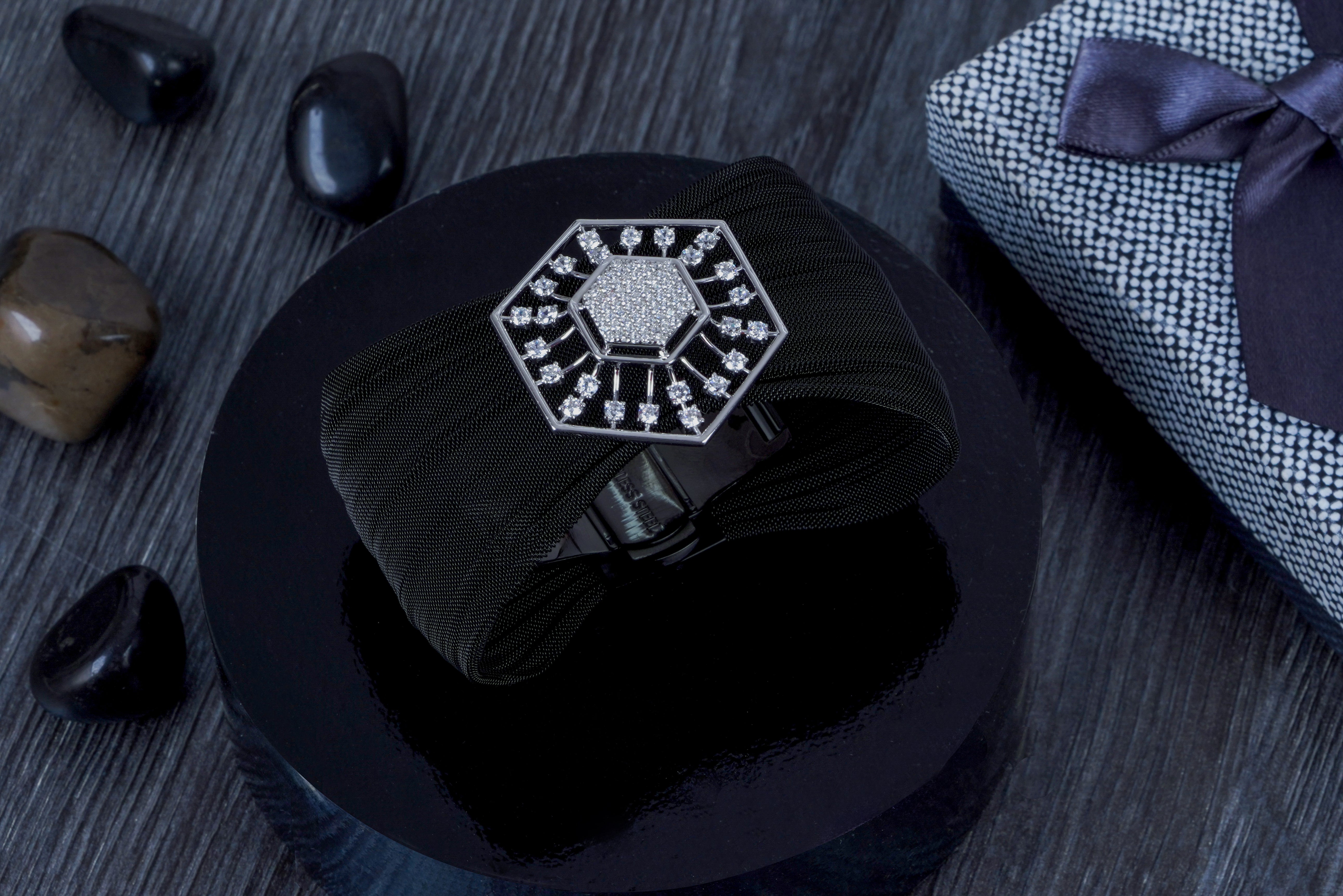 ✅ Exquisite Design: Hexagonal motif with pavé-style diamond embellishments.