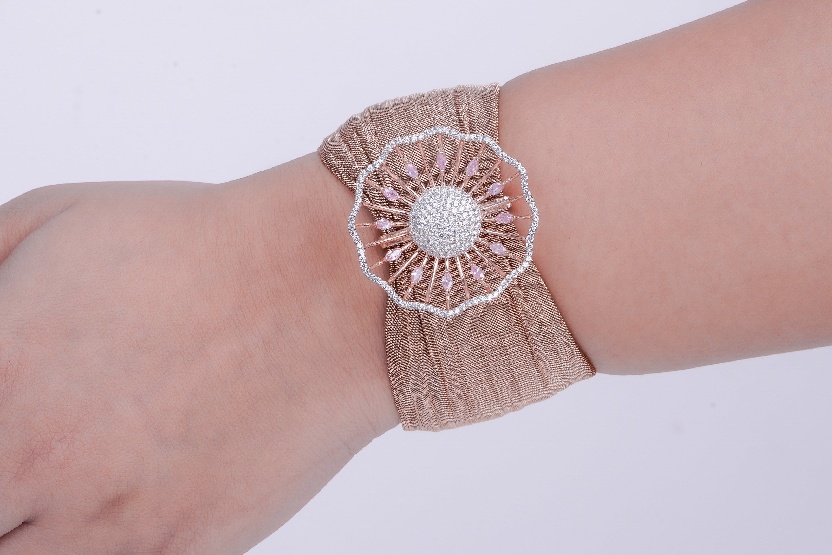 ✅ Design: Intricate floral motif with pavé-set embellishments