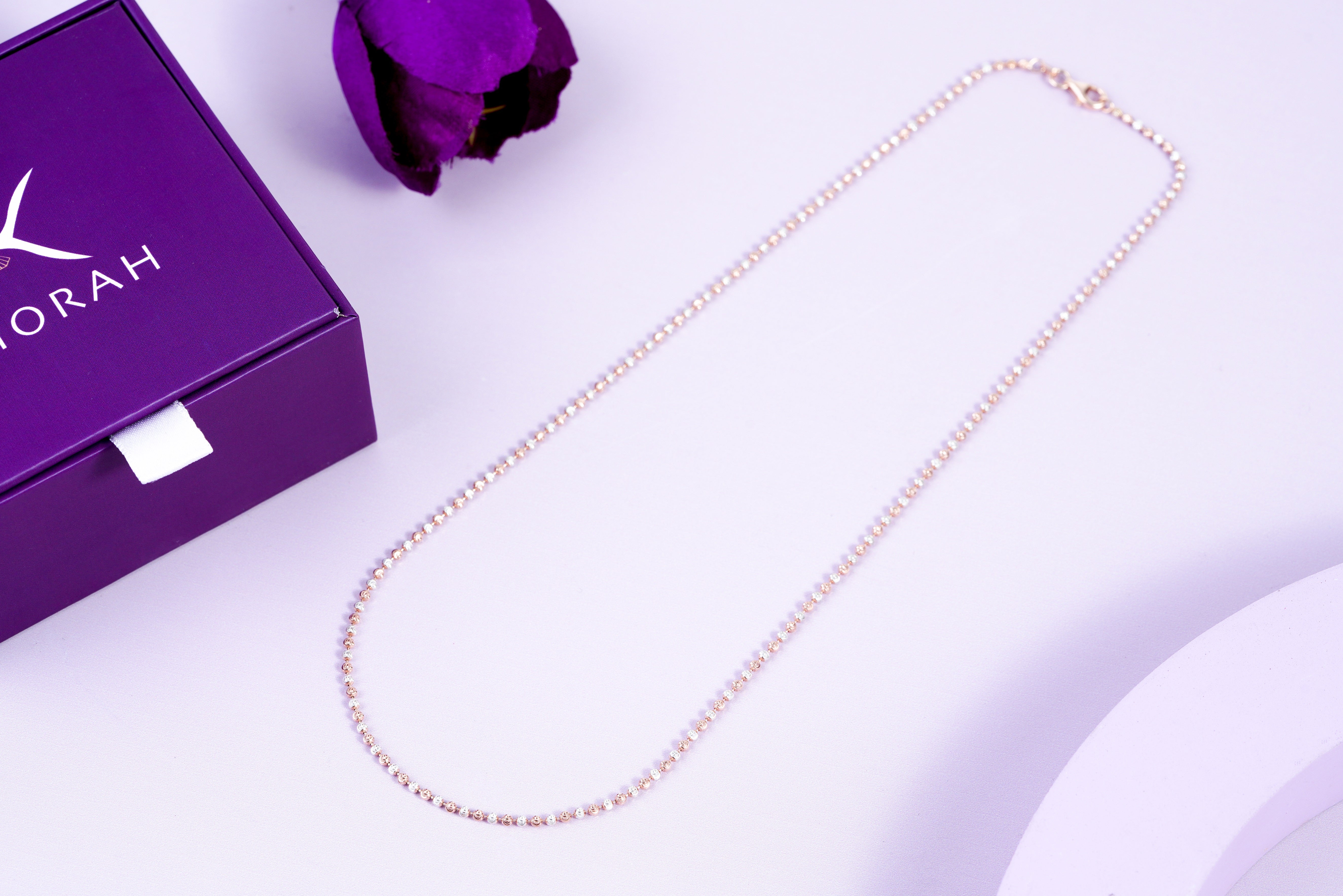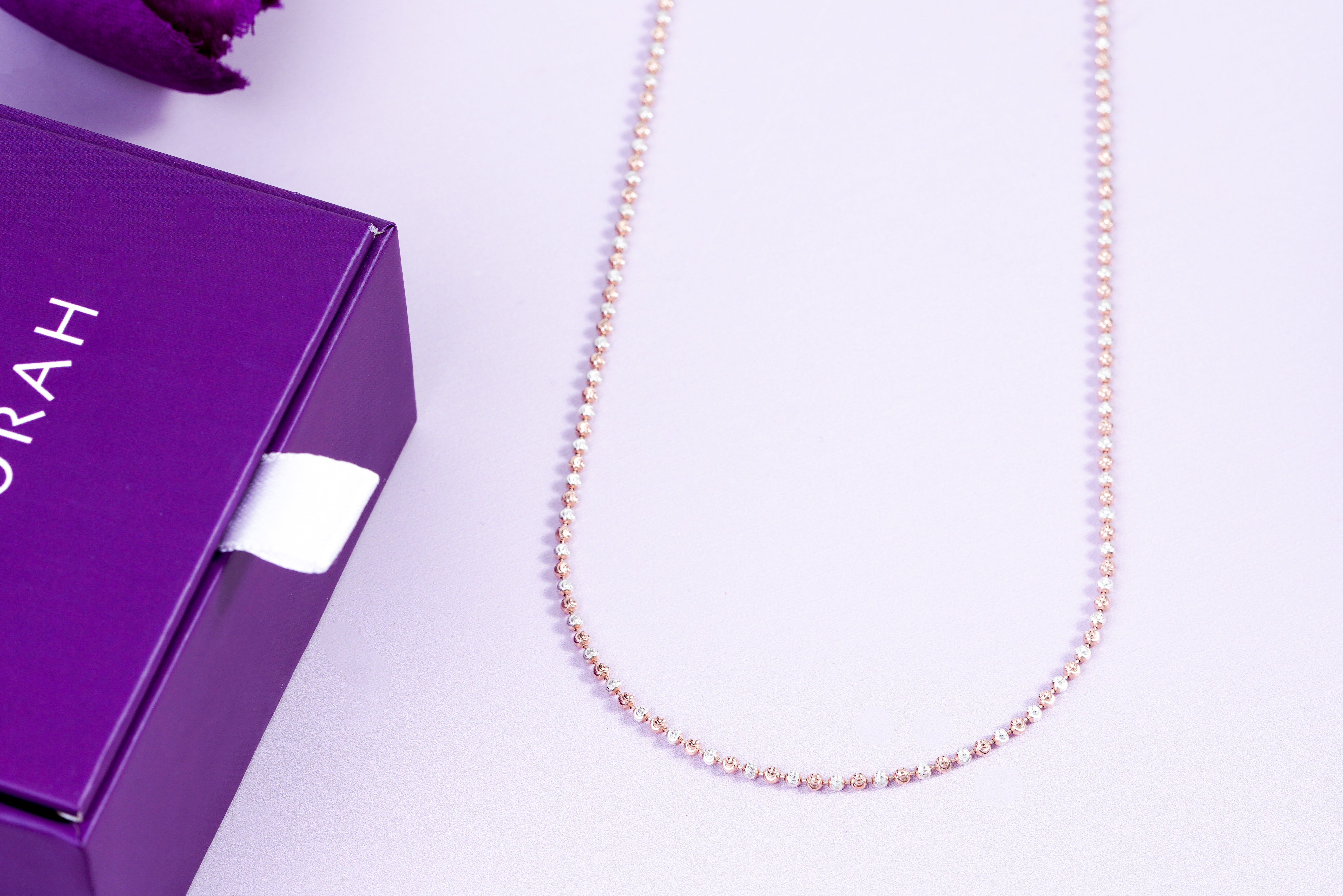 Discover how classic chic meets a contemporary vibe in Kiorah's exquisitely crafted silver ball chain necklace. This stunning piece features a delicate Italian ball chain composed of tiny, polished beads of authentic 925 sterling silver. The necklace exudes warmth and sophistication, featuring accents of lustrous rose gold plating. The evenly spaced beads create a smooth, symmetric flowing design that sits gracefully along your neckline, adding a subtle sparkle to your ensemble. Its minimalistic aesthetic gives it complete versatility, making the piece ideal for pairing with both casual daytime attire and formal nighttime wear.