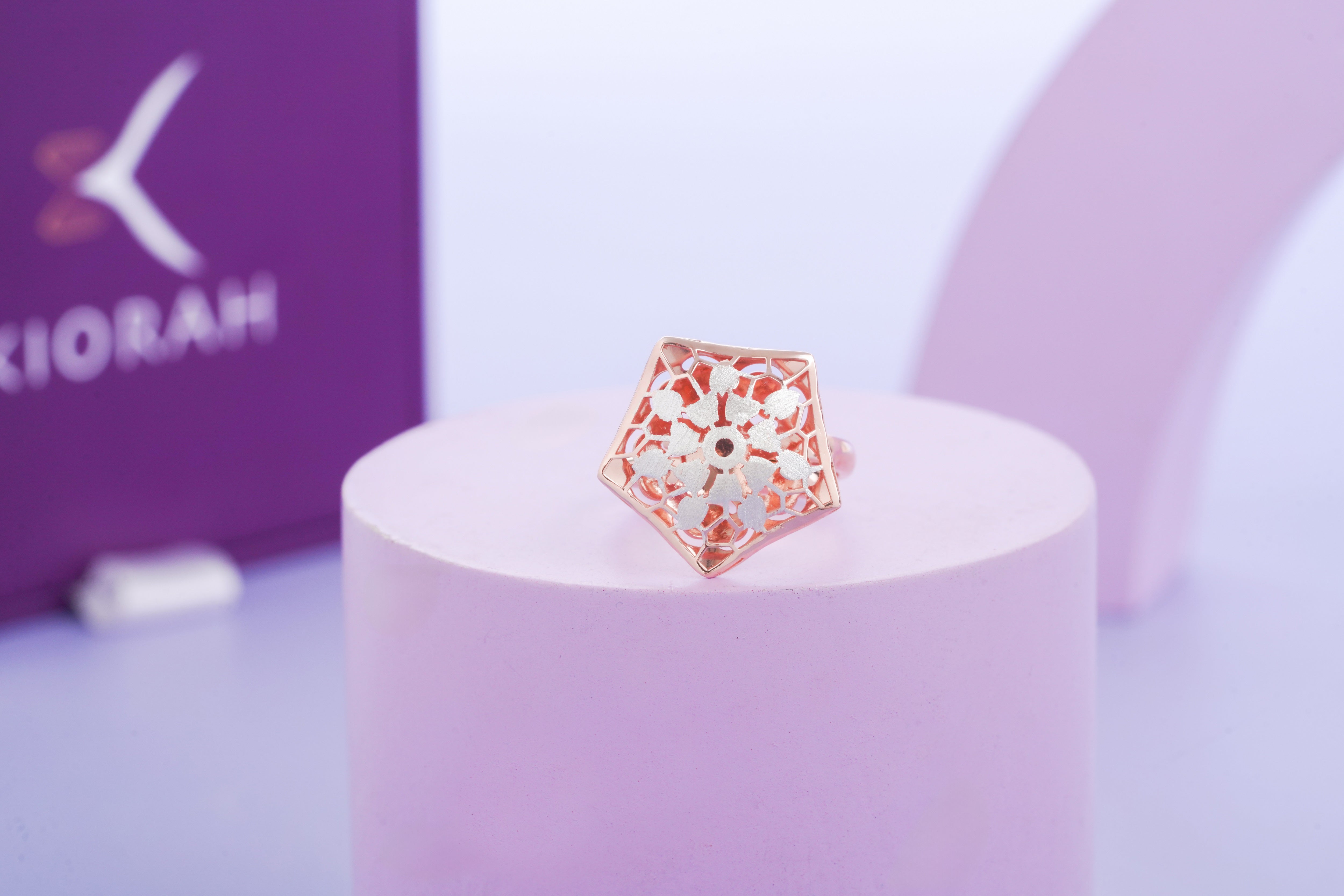 Wear it, and let its rose radiance light up your style. This versatile ring is perfect for daily wear or special occasions, seamlessly complementing both casual and formal outfits. Whether worn alone for a subtle, elegant statement or paired with other KIORAH rings, it adds a touch of sophistication to your jewelry collection.